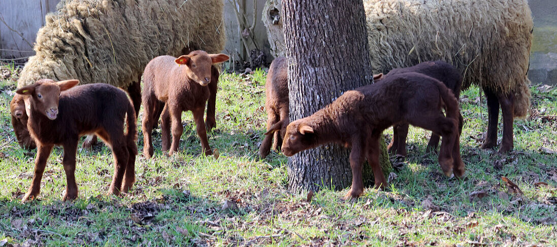 Nahezu täglich wächst derzeit die tierische Verstärkung für die Schafherde des Freilandmuseums. Die ersten Tage verbringen die kleinen Lämmer noch mit ihren Mutterschafen im Schafstall, sobald sie etwas älter sind, sind sie stundenweise auf den Museumswiesen zu erleben. Bei den Ziegen hat sich sogar Zwillingsnachwuchs eingestellt, dagegen ist bei der Kaninchenrasse Deutsche Großsilber noch etwas Warten angesagt.
