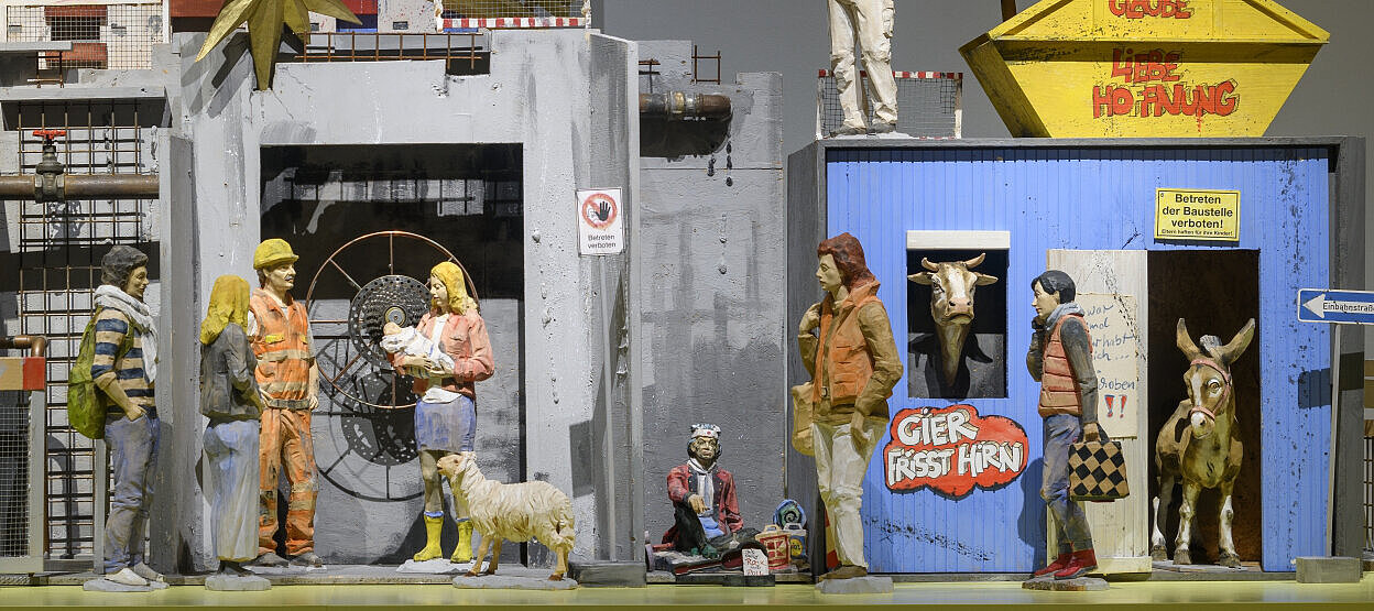 Was wäre, wenn Maria, Josef und das Jesuskind den Menschen heute begegnen würden? Künstlerinnen und Künstler haben das Weihnachtsgeschehen in die heutige Lebenswelt übersetzt, zehn solcher zeitgenössischen Krippen sind anlässlich der Ausstellung Krippenzeit im Museum Kirche in Franken in der Spitalkirche zu sehen.