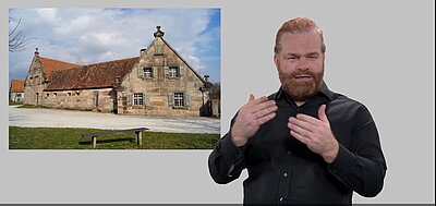 - In der Ausstellung „Steinreich – Naturstein im ländlichen Franken“ im Anwesen aus Zirndorf in der Baugruppe Ost erklärt ein Gebärdensprachvideo die Ausstellung.