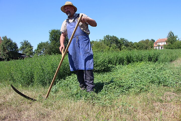 Bis vor einigen Jahrzehnten gehörte das Mähen von Gras und Grünfutter mit der Sense zu den selbstverständlichen Arbeiten der Menschen auf dem Land. Heute ist der Umgang mit diesem alten landwirtschaftlichen Gerät nur noch wenigen vertraut, doch wächst die Zahl derer, die hin und wieder gerne mal zur Sense greifen würden. Doch wie schärft bzw. dengelt und wetzt man das Blatt, wie setzt man die Sense mit der optimalen Körperbewegung richtig ein, um bestmögliche Ergebnisse zu erzielen? Im Kurs können Sie all diese Fertigkeiten lernen und üben.